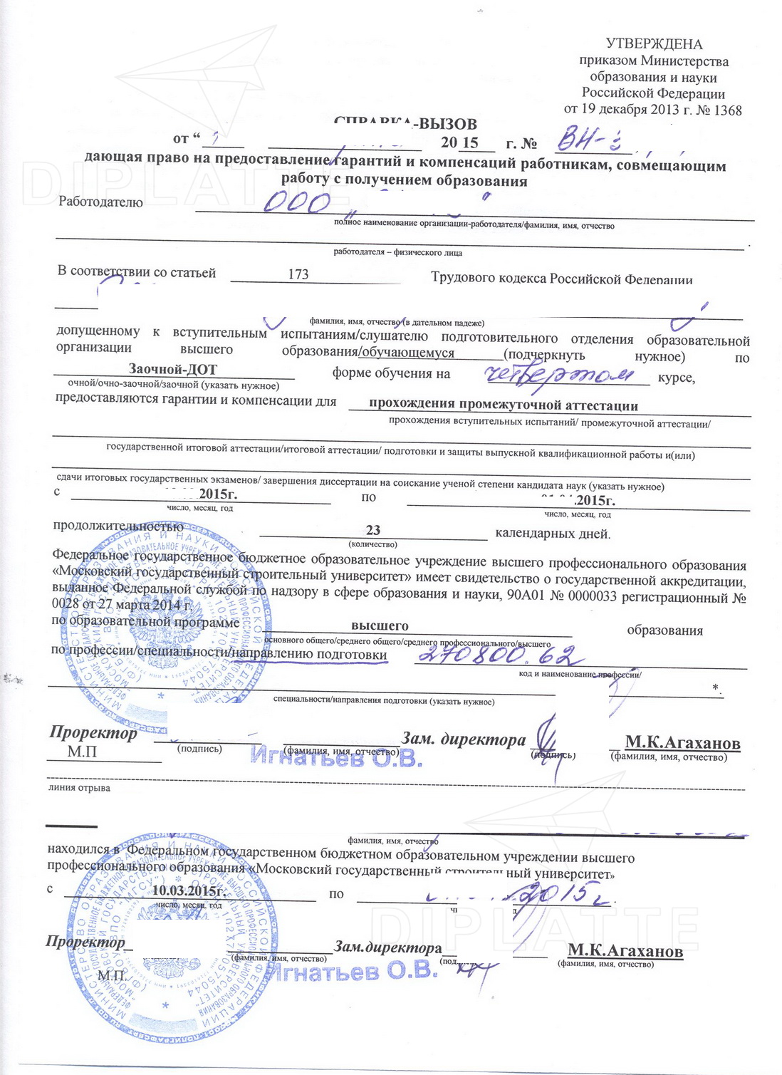 Бывают в жизни такие ситуации, когда крайне необходимо получить дополнительный отпуск на работе и сохранить доход. Если сотрудник является студентом-заочником, то можно попросить у руководства освобождения от должностных обязанностей на период подготовки и сдачи сессии. Для этого потребуется представить справку-вызов на сессию, которая может составить до 40 дней. Вот только получить ее очень быстро официальным путем вряд ли получиться. Ведь для прохождения процедуры понадобится писать заявление, ждать его рассмотрения. Потом уйдет время на оформление бумаги и ее заверение. Бюрократические препоны, увы, все еще присутствуют, да и форс-мажоры случаются. И не факт, что требуемый документ вообще выдадут. Поэтому проще купить справку-вызов на сессию на Диплатте.